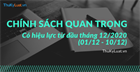 Từ đầu tháng 12/2020 (01/12 – 10/12) sẽ có những chính sách quan trọng trong các lĩnh vực: Thuế, Hải quan, Báo chí – Xuất bản,… có hiệu lực thi hành. Cụ thể bao gồm:
