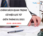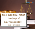 Từ đầu tháng 01/2021 (từ ngày 01/01 - 10/01/2021) sẽ có các chính sách quan trọng trong lĩnh vực Lao động; Doanh nghiệp; Xây dựng; Thương mại, đầu tư;… có hiệu lực thi hành, các chính sách cụ thể bao gồm: