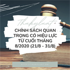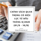 Từ cuối tháng 8/2020 (từ ngày 21/8 – 31/8) sẽ có các chính sách quan trọng trong lĩnh vực Quốc phòng; Thuế, phí, lệ phí; Bưu chính, viễn thông;... có hiệu lực thi hành, các chính sách cụ thể bao gồm:
