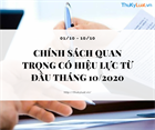 Từ đầu tháng 10/2020 (từ ngày 01/10 – 10/10) sẽ có các chính sách quan trọng trong lĩnh vực Giáo dục và đào tạo; Thi hành án; Kế toán - Kiểm toán; Bưu chính, viễn thông;... có hiệu lực thi hành, các chính sách cụ thể bao gồm: