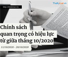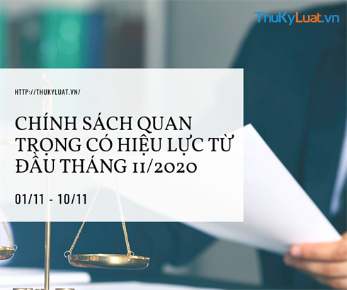 Từ đầu tháng 11/2020 (từ ngày 01/11 - 10/11) sẽ có các chính sách quan trọng trong lĩnh vực: Giáo dục; Thuế, phí và lệ phí; Thương mại, đầu tư,... có hiệu lực thi hành, các chính sách cụ thể bao gồm: