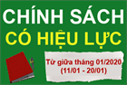 Từ ngày 11/01/2020 đến 20/01/2020 sẽ có các chính sách quan trọng trong lĩnh vực giáo dục, xã hội, nông nghiệp,…có hiệu lực thi hành, các chính sách cụ thể gồm có: