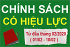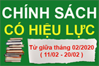 Từ giữa tháng 02/2020 (từ ngày 11/02 - 20/02) sẽ có các chính sách quan trong trong các lĩnh vực như Giáo dục, Tư pháp, BHYT,.. có hiệu lực thi hành, các chính sách cụ thể gồm có: