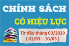 Từ đầu tháng 3/2020 (từ 01/3 – 10/3) sẽ có các chính sách quan trọng trong lĩnh vực giáo dục; y tế - dược; nông nghiệp; thuế, phí và lệ phí… có hiệu lực thi hành, các chính sách cụ thể bao gồm: