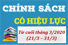 Từ giữa tháng 3/2020 (từ ngày 11/3 – 20/3) sẽ có các chính sách quan trọng về chế độ trợ cấp với nhà giáo; Phí và lệ phí; Y tế - dược;.. có hiệu lực thi hành, các chính sách cụ thể gồm có: