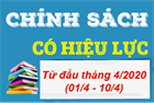 Từ đầu tháng 4/2020 (từ 01/4 - 10/4) sẽ có các chính sách quan trọng trong lĩnh vực giao thông, lao động - tiền lương, xuất bản,… có hiệu lực thi hành, các chính sách cụ thể gồm có: