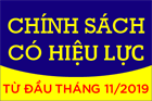Từ cuối tháng 11/2019 (từ ngày 21/11/2019 - 30/11/2019) sẽ có các chính sách quan trọng trong lĩnh vực thuế, công chức, viên chức,… có hiệu lực thi hành, các chính sách cụ thể gồm có: